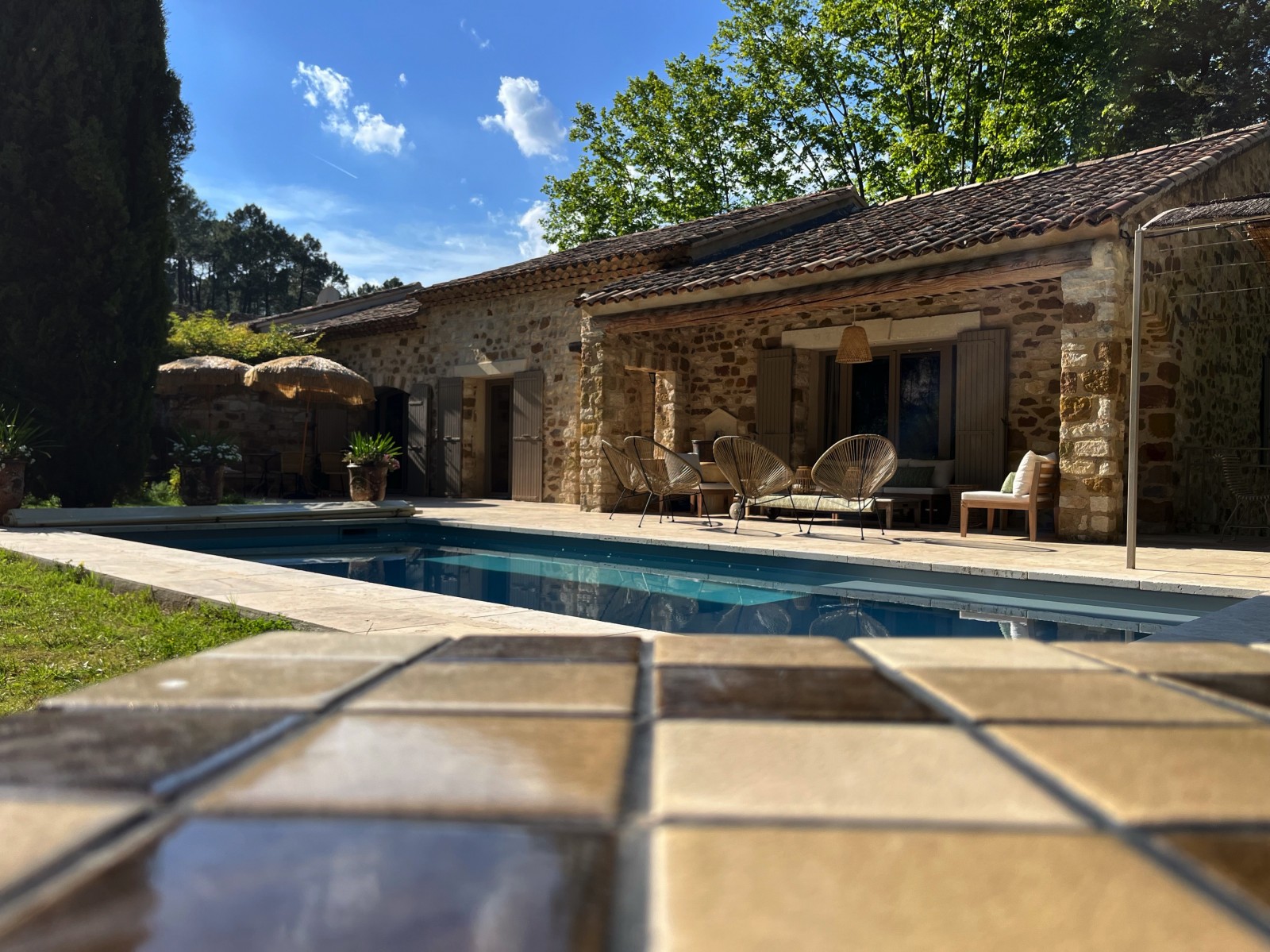 Nous avons choisi une très belle pierre uniforme intérieure et extérieure afin de créer une vraie homogénéité pour ne pas avoir de rupture visuelle.