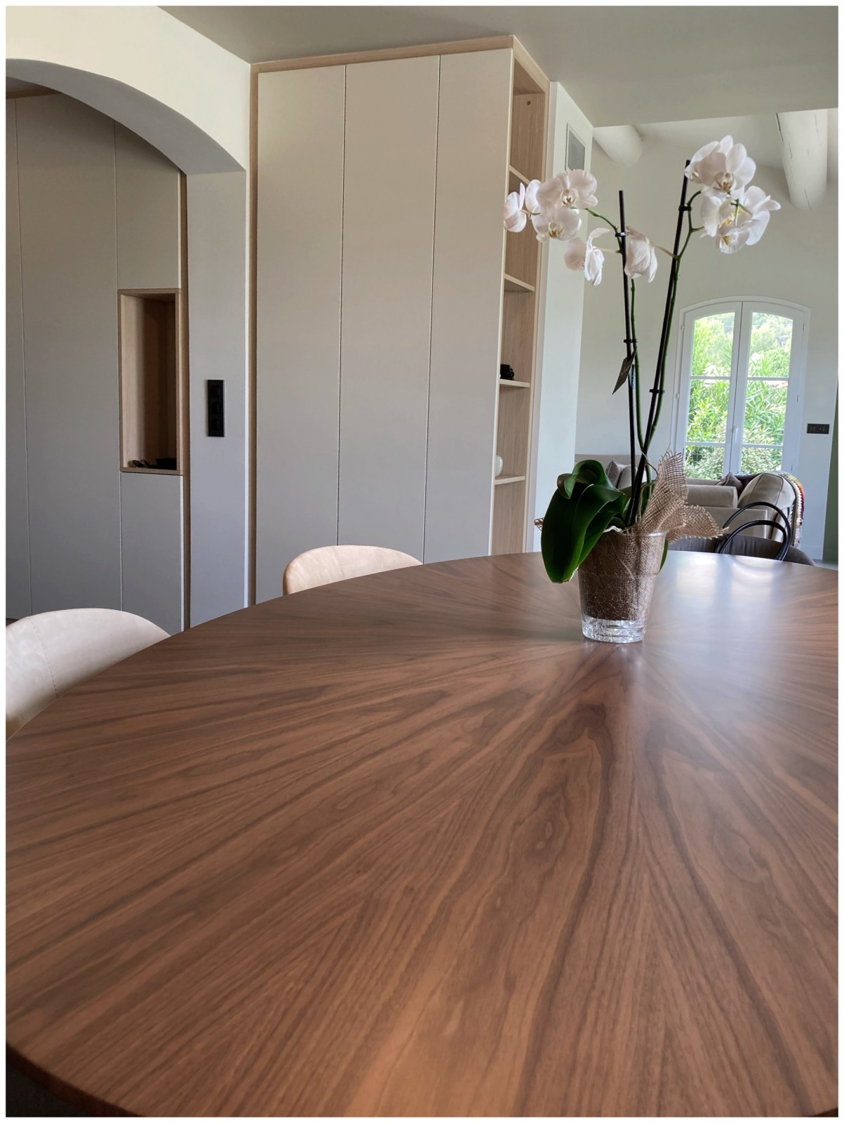 L’agence d’architecture d’intérieur a entièrement repensée les volumes, les agencements intérieurs et la décoration de cette maison située dans le Luberon en plein coeur du Golf de Pont Royal. Un travail tout d'abord sur l'organisation spatiale par l'élaboration de différents projets avant de valider celui qui a été retenu par l'agence ainsi que par les clients .
