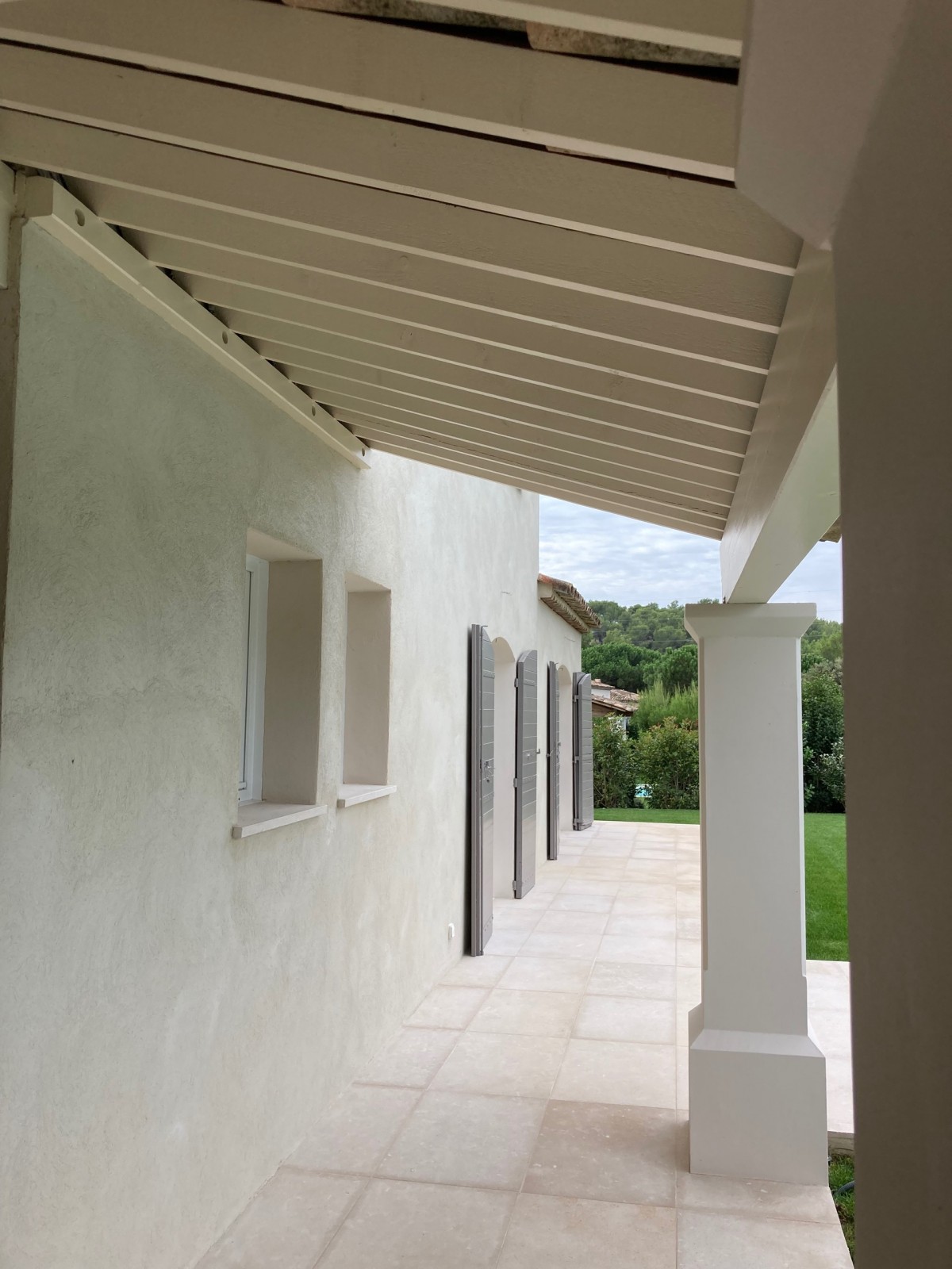 De la pierre a été posée à l’extérieur afin d’amener une élégance naturelle dans ce jardin au cœur du golf de Pont Royal. Un jardin aux proportions adapté au volume de la maison donnant sur cet écrin verdoyant incroyable du golf de Pont Royal.