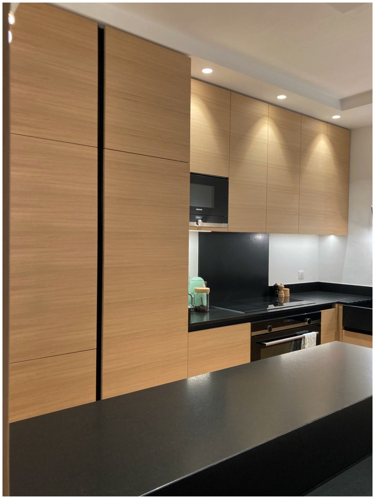 Outre les options en pierre, certains propriétaires optent pour un plan de travail en céramique. Ce matériau est apprécié pour sa résistance aux taches, sa durabilité et sa facilité d'entretien. Les plans de travail en céramique sont disponibles dans une variété de couleurs et de finitions, ce qui permet de les adapter à différents styles de cuisine.