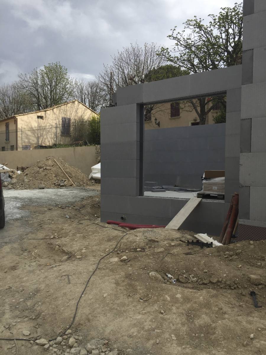 La conception de cette maison s'est matérialisée grâce à une collaboration coordonnée. Les clients ont fait appel à l'expertise de Pierre Mercier, architecte DLPG d'Aix en Provence, pour dessiner cette résidence. Jean Louis Leurat, maçon spécialisé en bloc coffrant, a assumé la construction, tandis que l'agence Levendesign a pris en charge les aspects intérieurs et extérieurs.