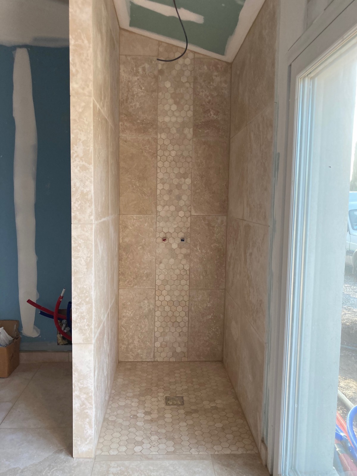 Les baignoires spa, jacuzzi ont été enterrées afin de rappeler les repères visuels de la mer. Un travail autour de l'apaisement et du bien être , c'est pour cela que nous avons travaillé sur des couleurs chaudes , terreuses afin d'apporter une vraie sérénité visuelle.