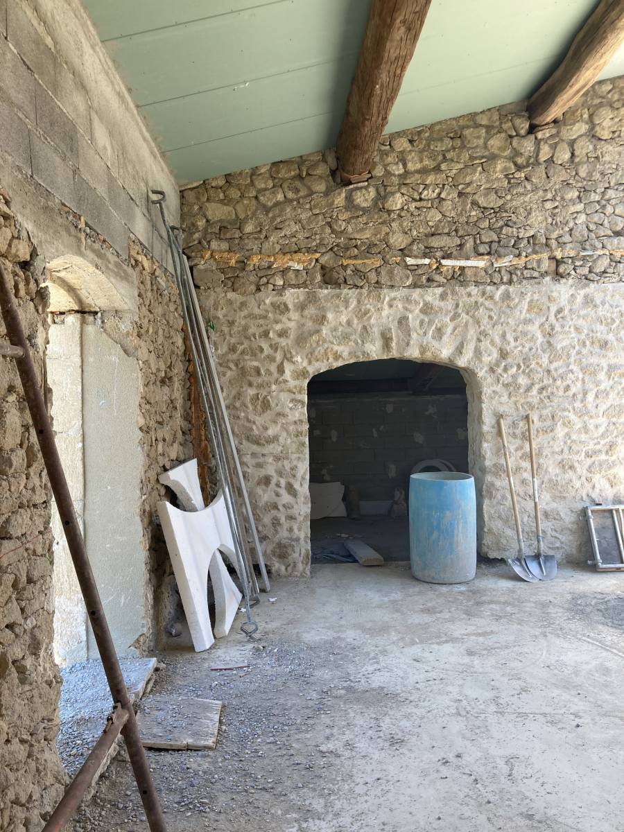 Les matériaux choisis pour cette rénovation ont joué un rôle essentiel dans la transformation du lieu. La pierre, symbole d'ancienneté et de solidité, a été rénovée avec soin et mise en valeur pour lui rendre tout son éclat d'antan. Les murs en pierre apparents, autrefois couverts de l'usure du temps, se dressent désormais fièrement, rappelant l'histoire riche de cette bâtisse.