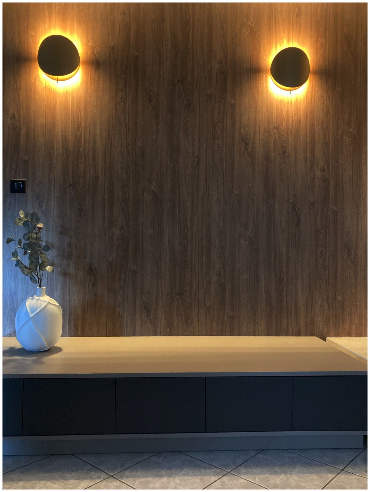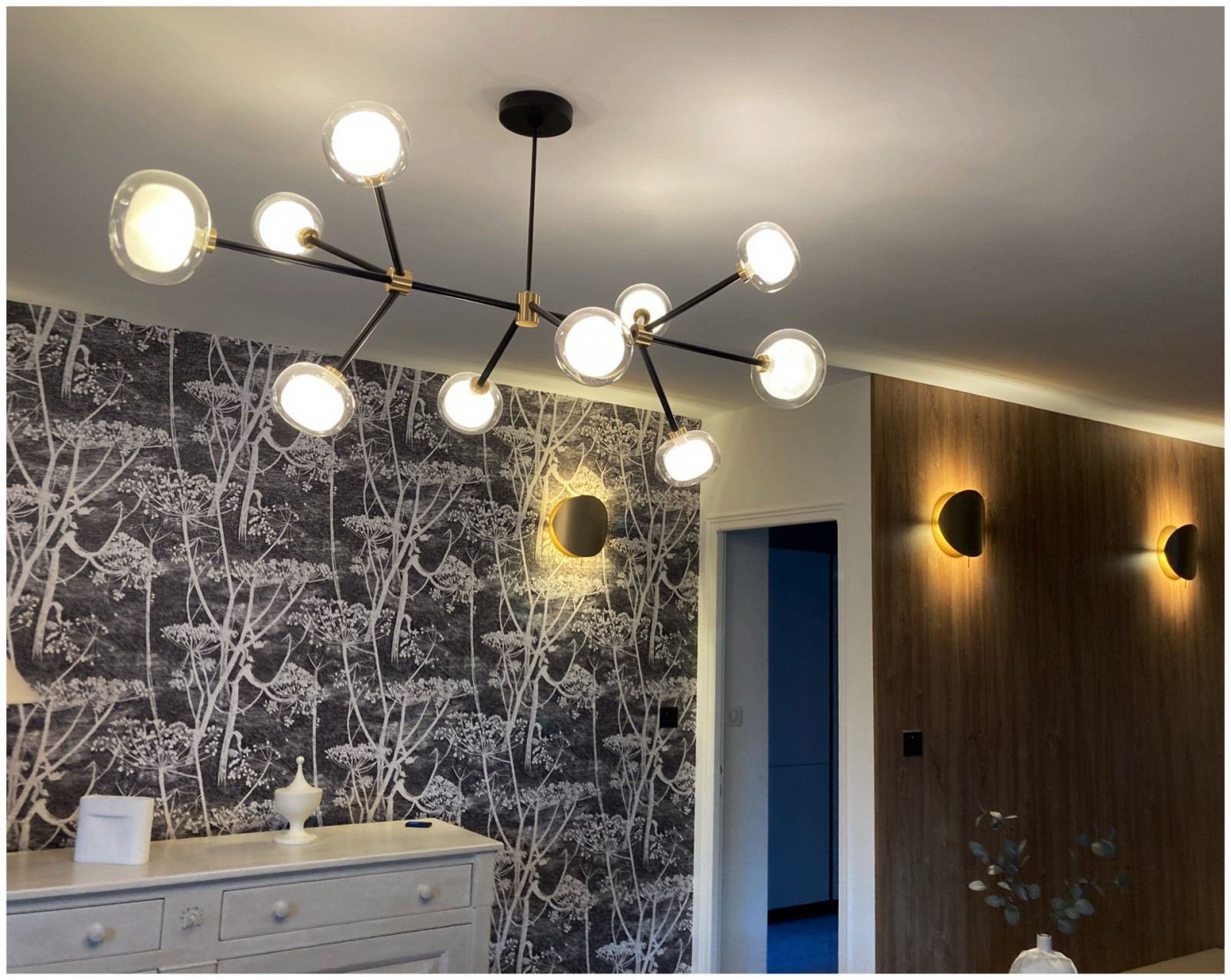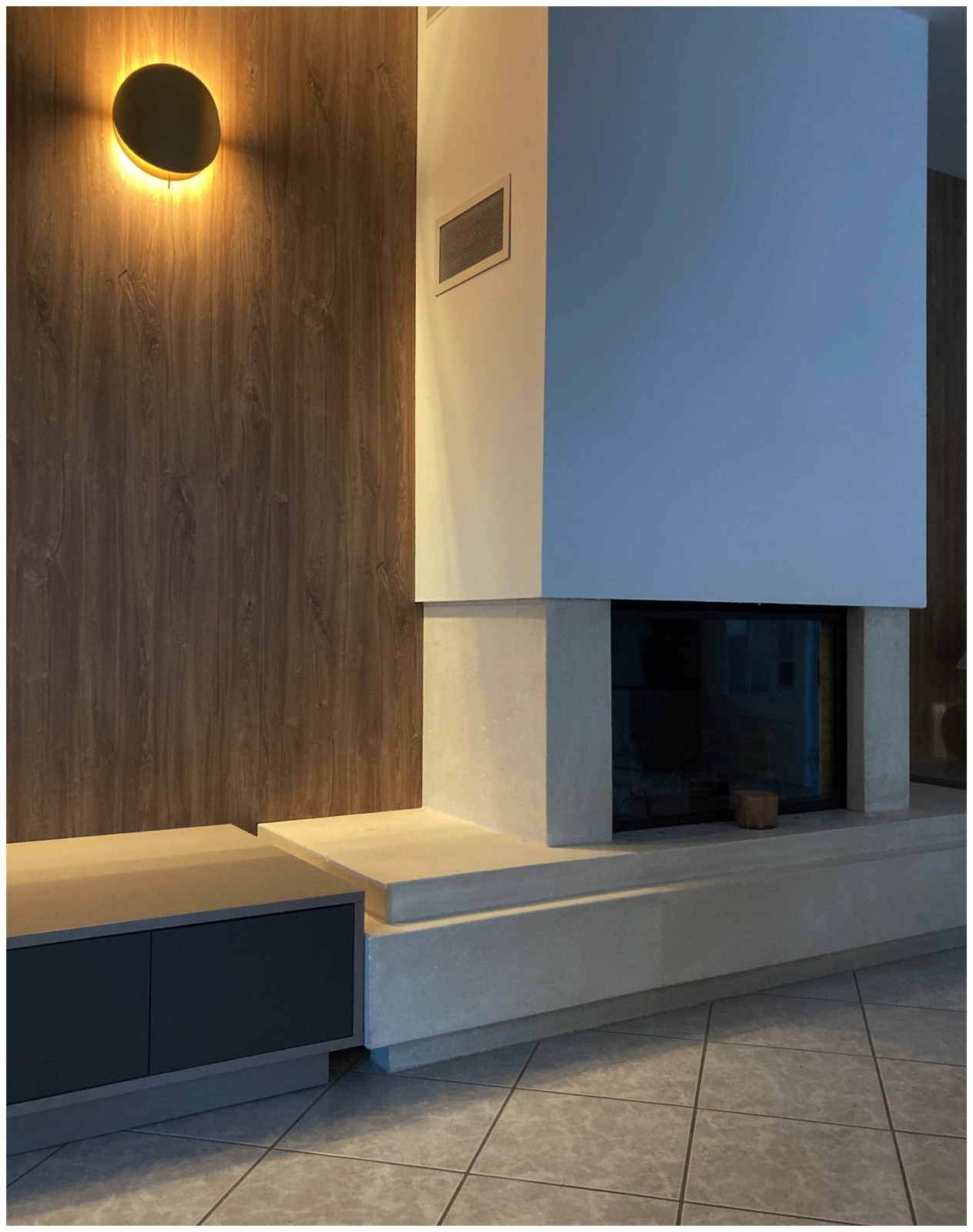 Nous avons tout repensé et refait : la cuisine , les meubles du salon tv, l’aménagement de leur cheminée, leur entrée.