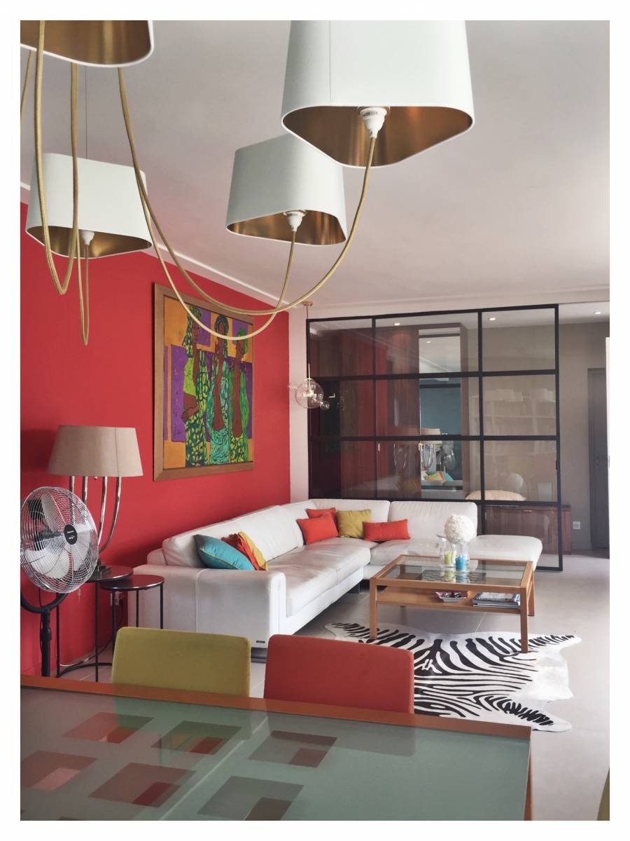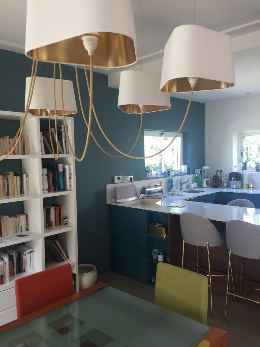 La cliente a fait appel à l'agence car elle souhaitait quelqu'un capable de travailler et de jongler avec la couleur. Je venais de terminer un énorme projet de construction en duplex avec piscine sur les toits d'Aix en provence où j'avais travaillé avec ma cliente sur une décoration riche en couleurs et en motifs. J'aime mélanger les styles: ce type d'exercice me fascine , ils correspondent pour moi à chaque fois à de nouveaux défis.