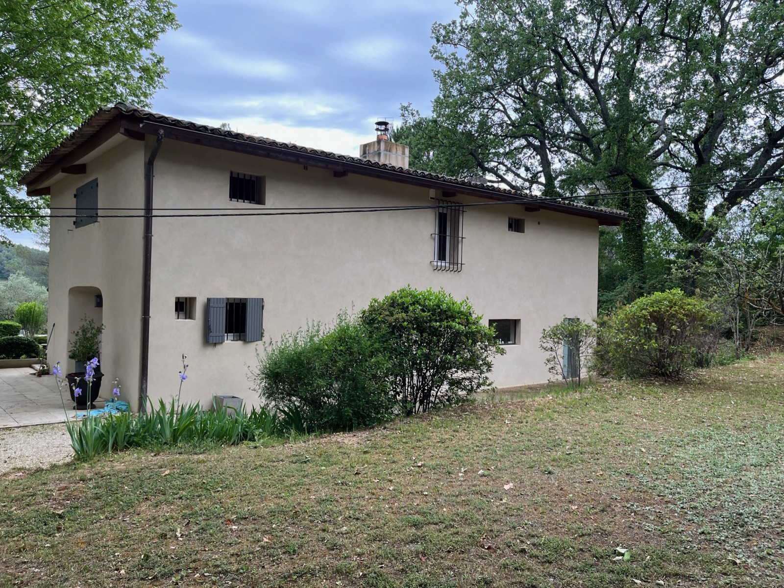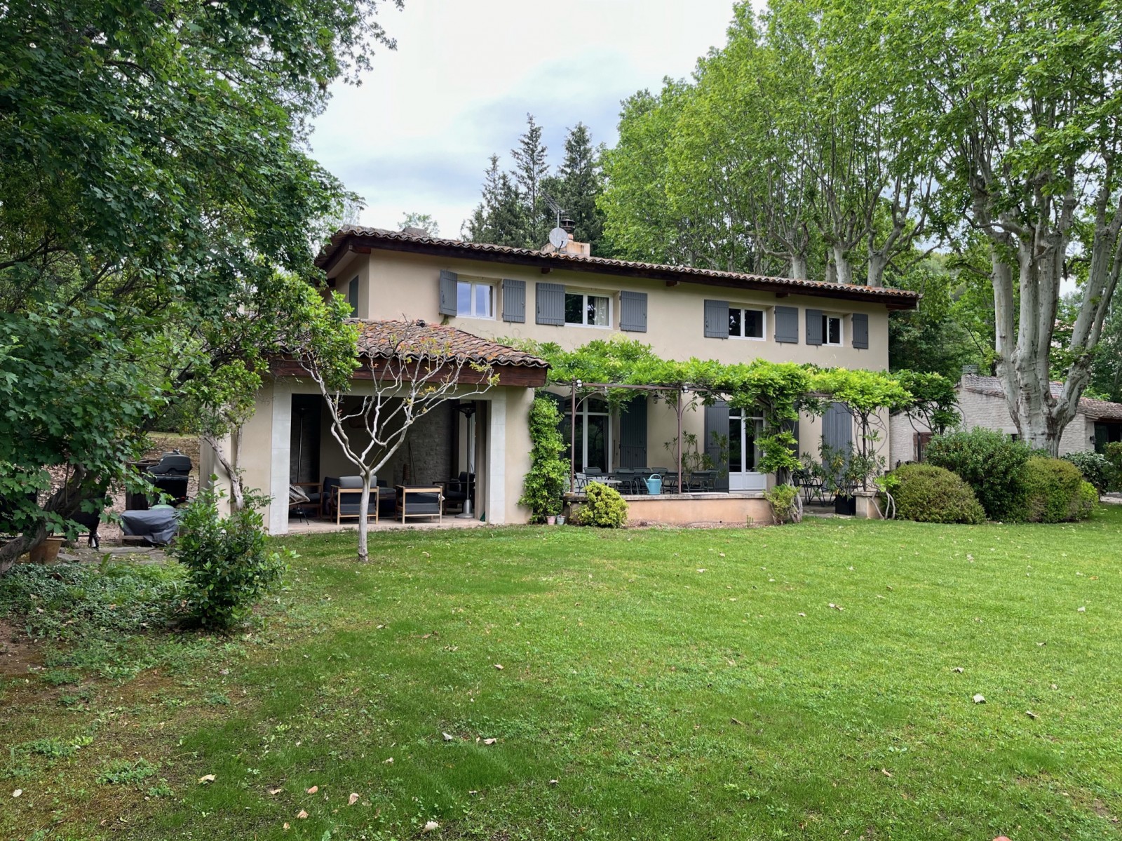 | Sous les platanes centenaires , une bastide provençale domine. |