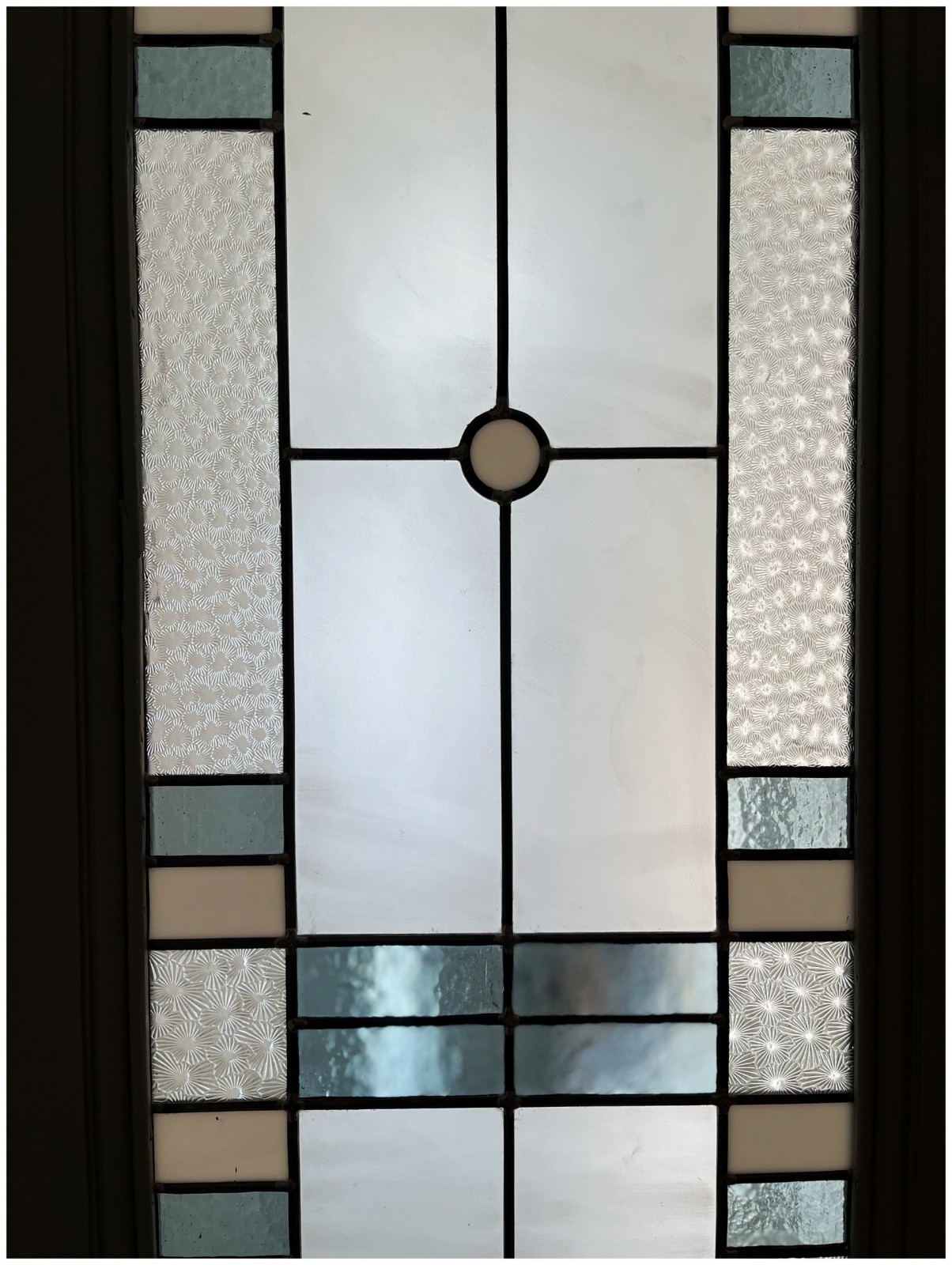 Nous avons donc travailler avec un maximum d'éléments récupérés sur place et rénovés comme les vitraux réalisés par notre maître verrier: un travail incroyable de composition mélangeant des morceaux de verre anciens et nouveaux.