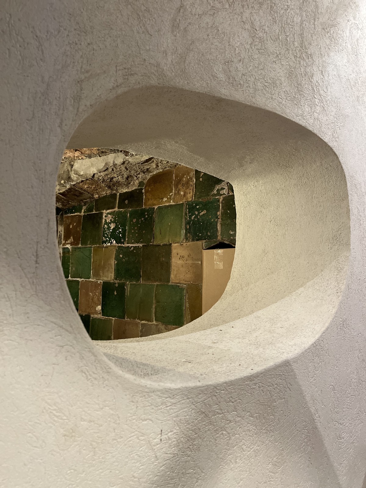 Des banquettes maçonnées, accompagnées d’un jeu de coussins, invitent à la détente et rappellent l’esprit des bistrots où l’on se retrouve pour partager un verre de vin, un repas ou un moment entre amis.