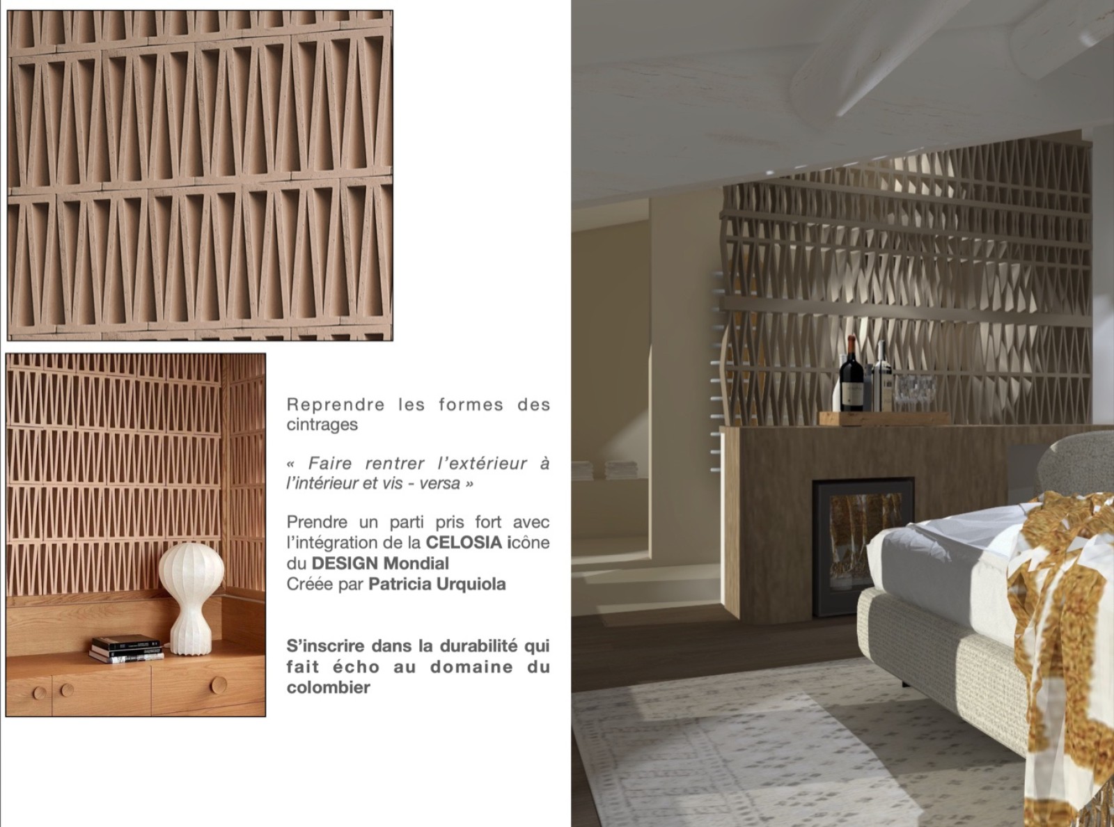 Les formes architecturales remarquables, l’hospitalité renommée et la philosophie culinaire du chef étoilé sont au cœur de notre démarche. À l’image d’une grande recette gastronomique, chaque espace et chaque élément de design intérieur ont été pensés comme une expérience sensorielle. Textures, jeux de lumière et harmonie visuelle deviennent les ingrédients qui racontent l’identité du lieu : un refuge de charme pour les visiteurs en quête de pause estivale ou de plaisirs gourmands dans la partie bistrot.