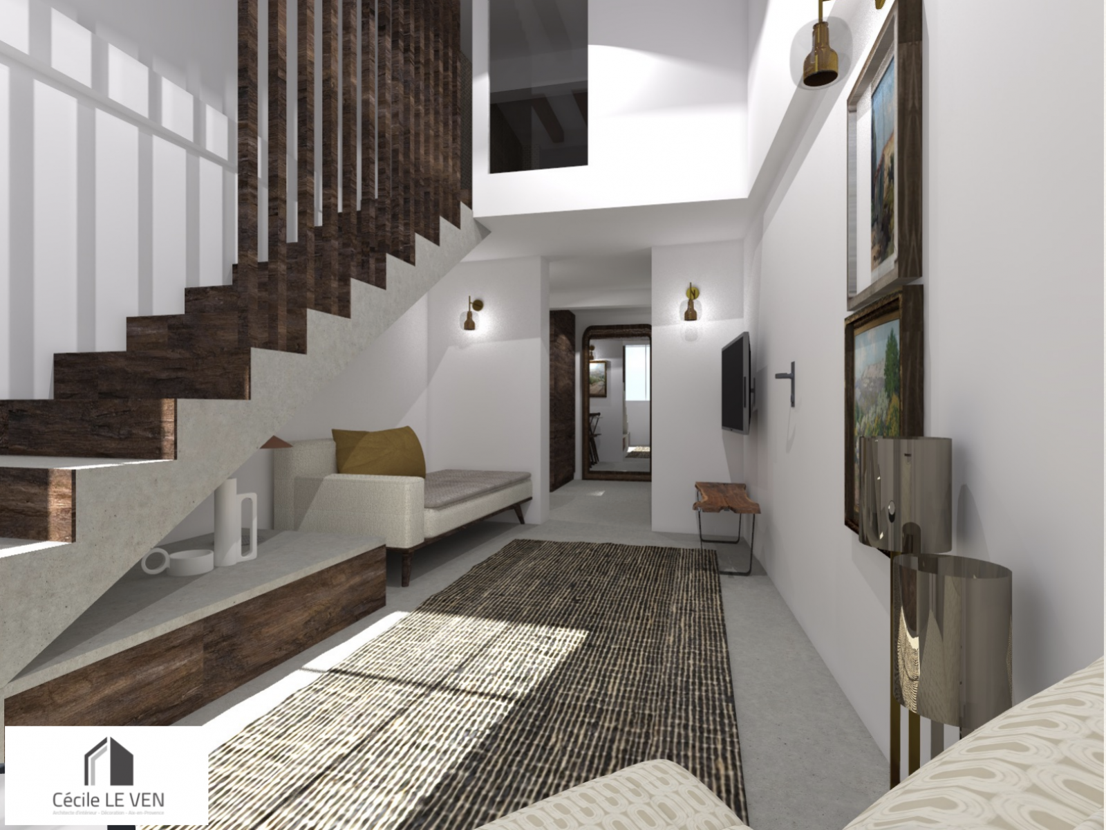 Un très beau projet réalisé sur Aix en Provence près de la place des prêcheurs : nous avons dessiné un escalier en béton brut , fondamental pour l'appartement car il devient la pièce magistrale de ce projet .