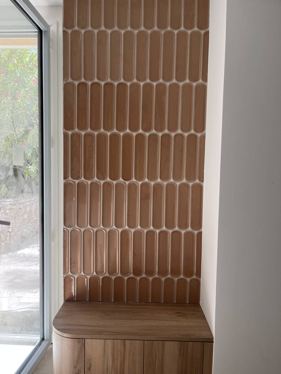 Le choix des matériaux a été guidé par un dialogue constant avec les clients : un carrelage en céramique effet pierre de Living Ceramics habille les sols, mariant authenticité provençale, esthétique contemporaine et facilité d’entretien — un critère essentiel pour la vie quotidienne des propriétaires et de leur chien à poil long.
