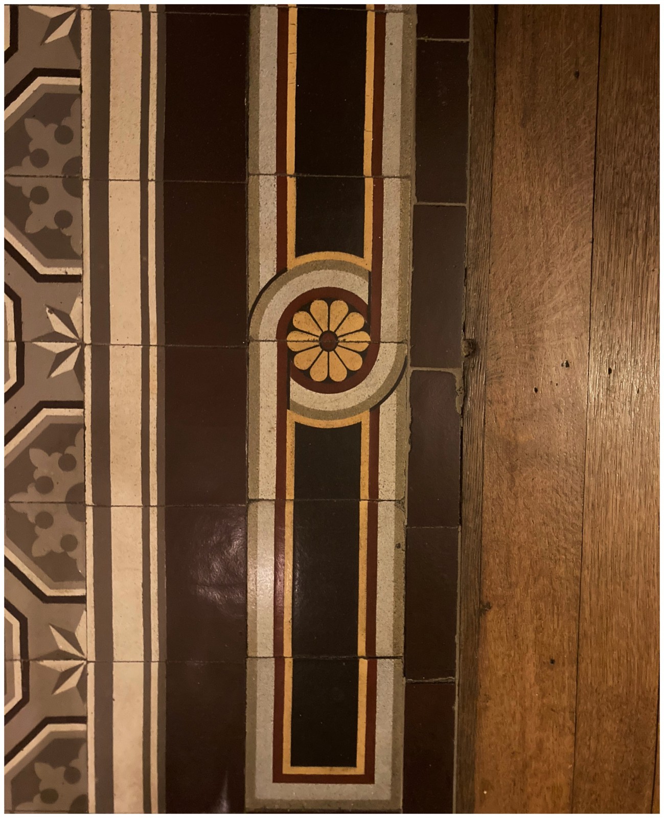 Les sols en carreaux de ciment au dessin du 19ème siècle racontent des récits du passé, patinés par le temps et les pas de ceux qui les ont foulés autrefois.