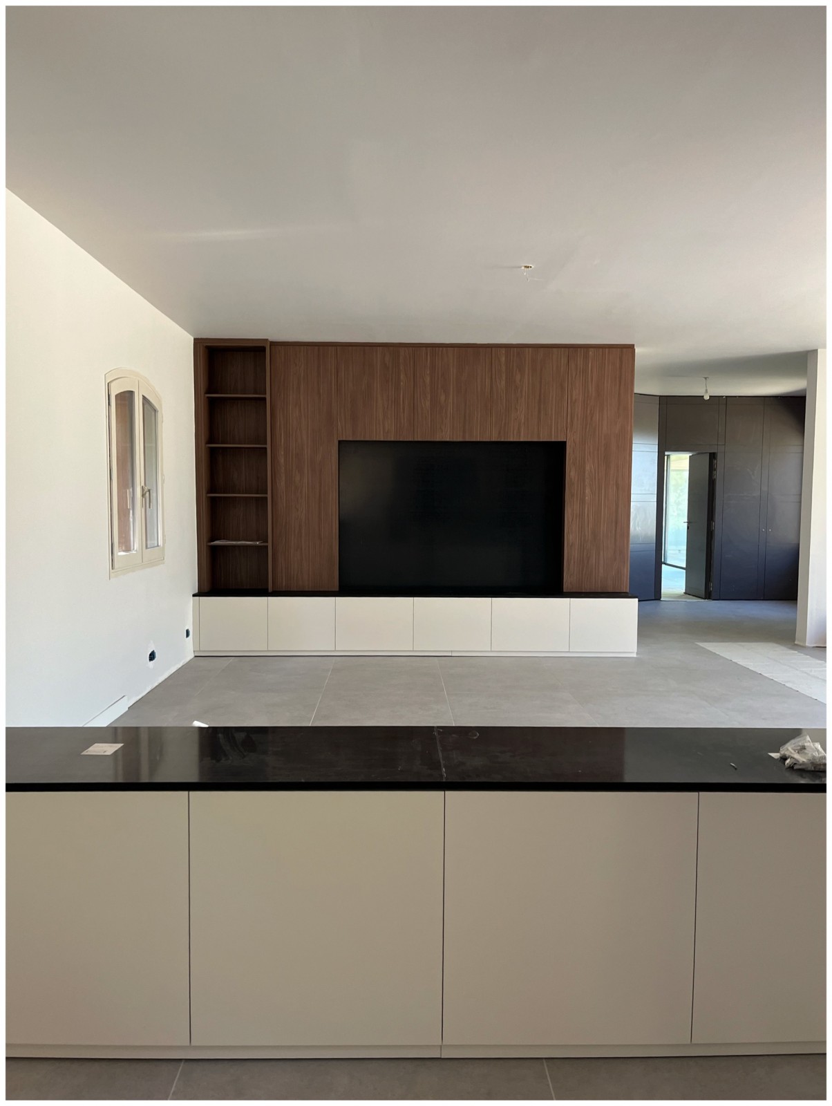 L’ensemble télé reprend les mêmes codes afin de pouvoir créer une vraie unité dans la pièce principale ainsi que dans l’ensemble de la maison .