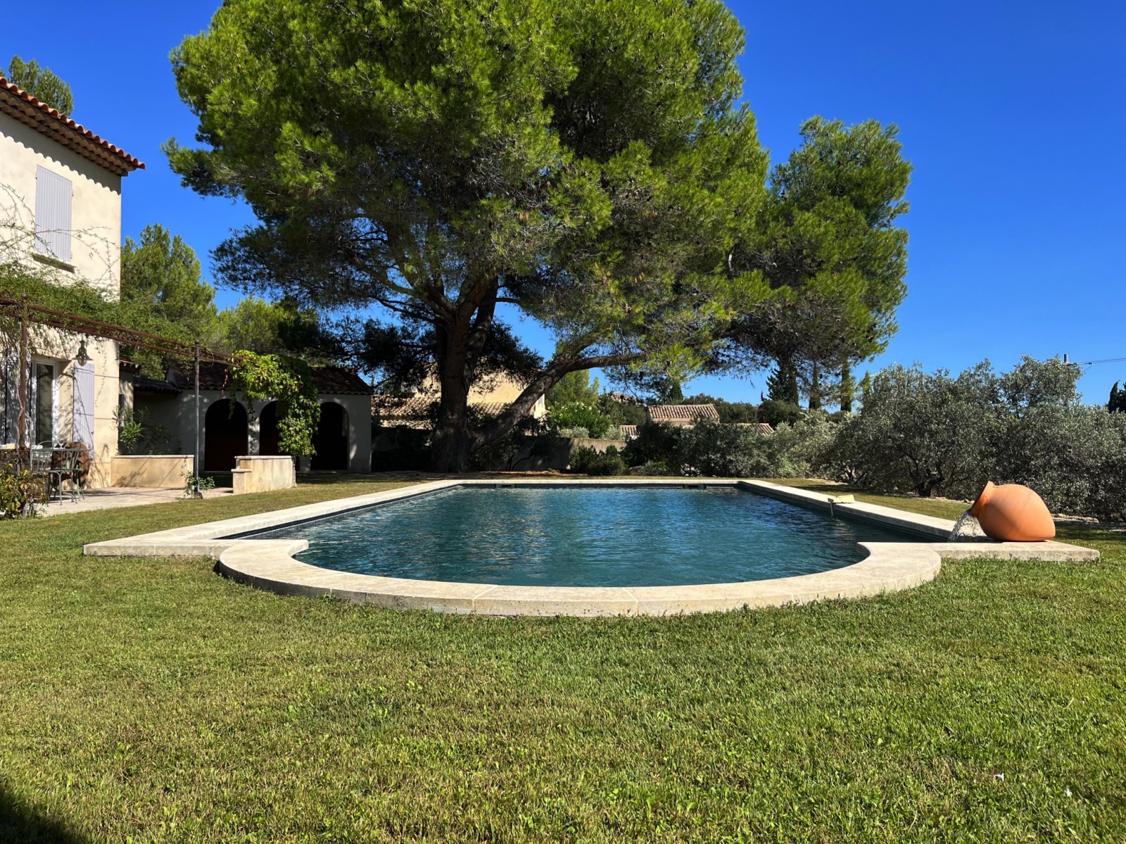 Le jardin qui entourait la bastide était tout aussi spectaculaire. Avec une vue dominante sur les oliviers qui s'étendaient à perte de vue, ce jardin était un véritable joyau. Plus de 80 oliviers centenaires apportaient une atmosphère sereine et majestueuse. La piscine, parfaitement intégrée dans ce paysage envoûtant, apportait une touche de fraîcheur et de dynamisme au jardin. Sa vasque qui crachait de l'eau créait un rythme apaisant, harmonisant parfaitement le tout.