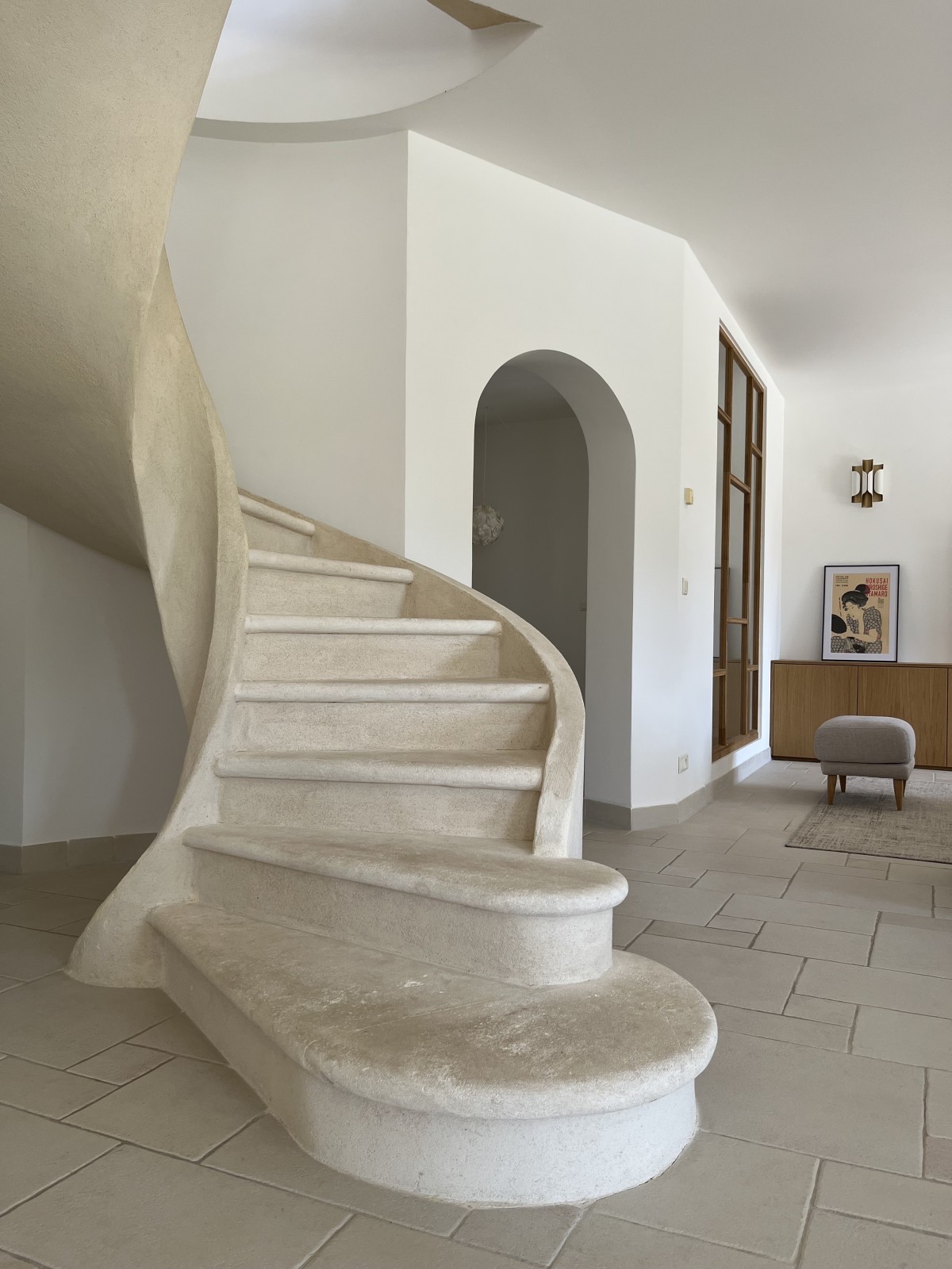L'un des éléments les plus remarquables de la rénovation intérieure de cette bastide était l'escalier monumental. Par sa forme unique et sa prouesse technique, il apportait une légèreté paradoxale à l'intérieur de la bastide rénovée. Cet escalier était bien plus qu'un simple moyen de transition entre les étages ; il était devenu une véritable œuvre d'art, une pièce maîtresse qui captivait l'attention de tous ceux qui franchissaient le seuil de la maison.