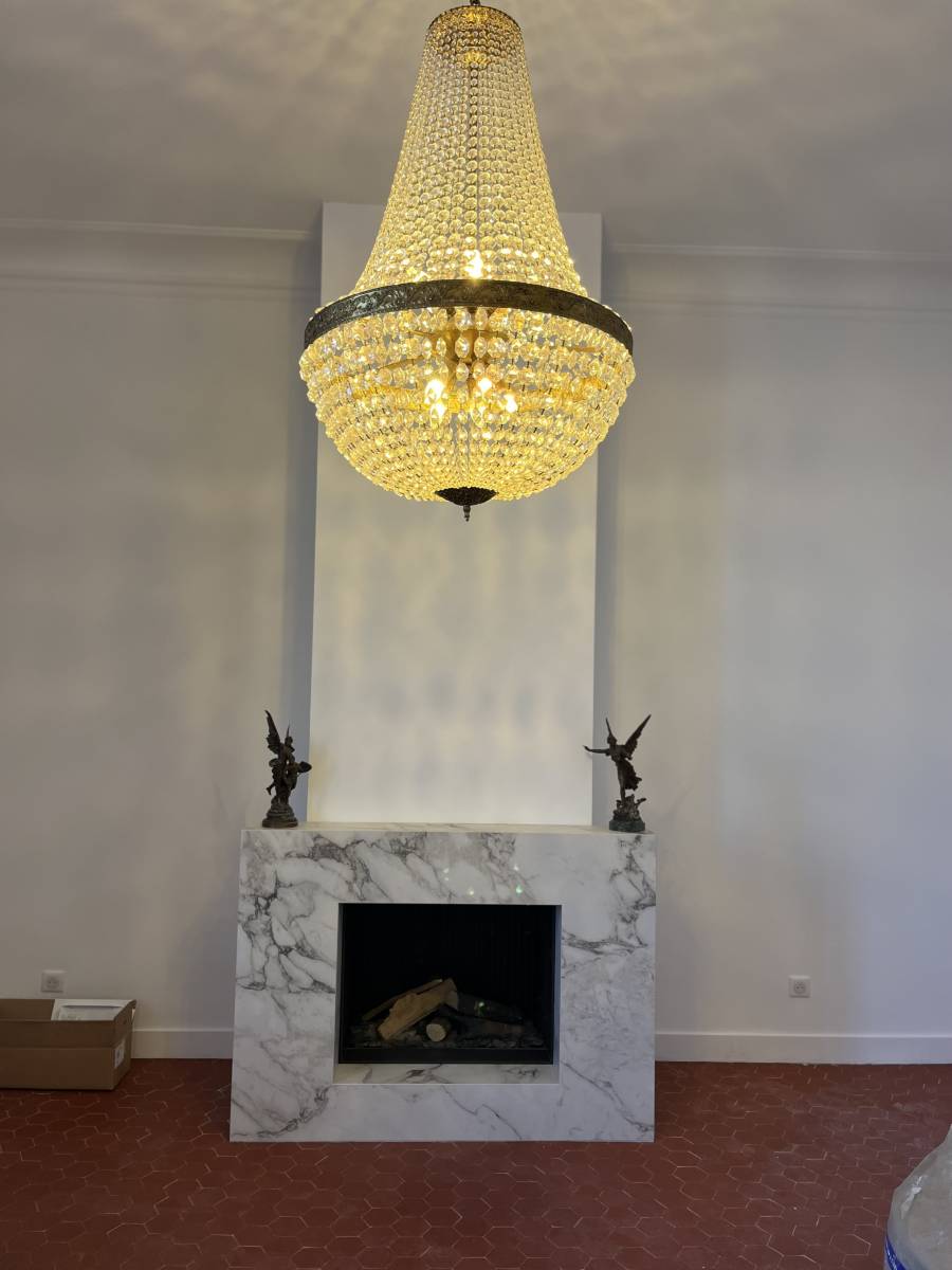 La cheminée en marbre, située dans le salon, était un véritable chef-d'œuvre sculpté par des artisans d'époque. Elle avait été le témoin de soirées chaleureuses et de moments précieux partagés par les anciens occupants.