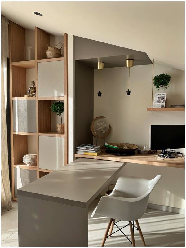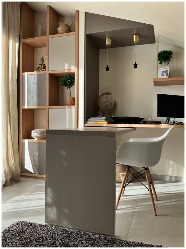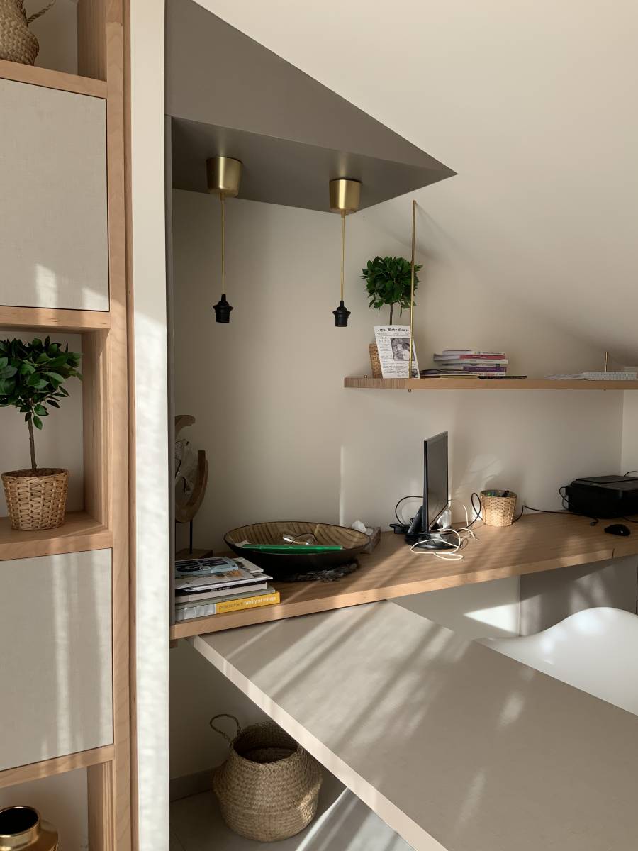Avec le télétravail, de nombreux clients nous demandent de travailler sur un espace de travail à la maison: un espace fonctionnel, connecté, agréable et surtout avec une possibilité d'isolement et de transformation en cas de besoin.