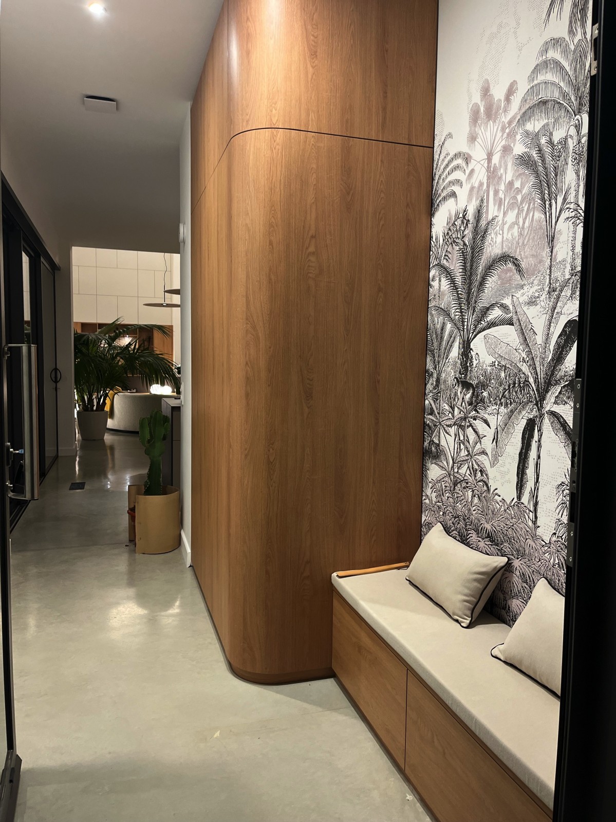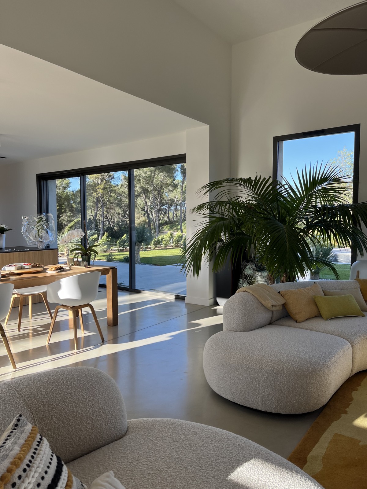 Des jeux de lignes verticales et horizontales rappellent les lignes de l'horizon et des palmiers, chères à notre cliente. Ce projet est un parfait exemple de notre expertise en intégration harmonieuse de la nature dans nos conceptions architecturales.