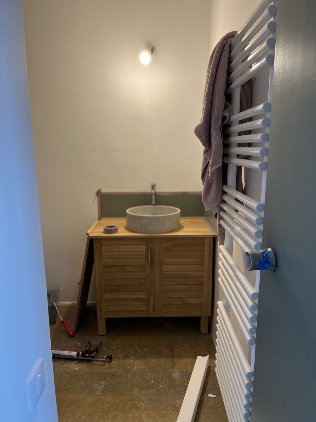 Le plan de travail sera remplacée par une pierre de mareuil claire.