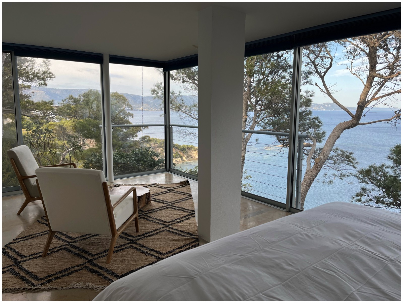 L’agence d’architecture d’intérieur et de décoration d’intérieur est tombée sous le charme de suite en voyant cette beauté architecturale : une vue et un paysage à couper le souffle. Des grandes fenêtres ouvertes sur le paysage maritime .