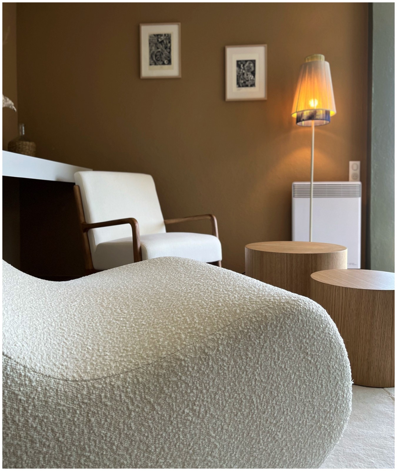 Couleurs, matériaux, bois naturel, mobiliers des années 70 : l’agence d’architecture d’intérieur a sélectionné précisément le mobilier afin de créer une « maison iconique » au fort potentiel artistique.